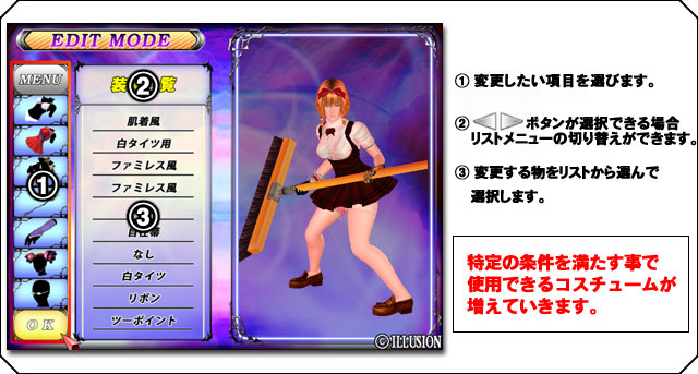 バトルレイパー2にはキャラクターのコスチュームや、使用武器もエディットすることが出来ます。